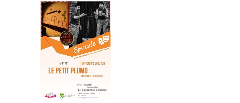 Spectacle Marlhes 28 octobre Afficher les options de partage × Partager Catégorie Spectacle Détails des prochaines sessions Le mardi 28 octobre 2025 de 15:00 à 17:00 Ical Public Tout public Lieu Bibliothèque de MARLHES Prochaines sessions